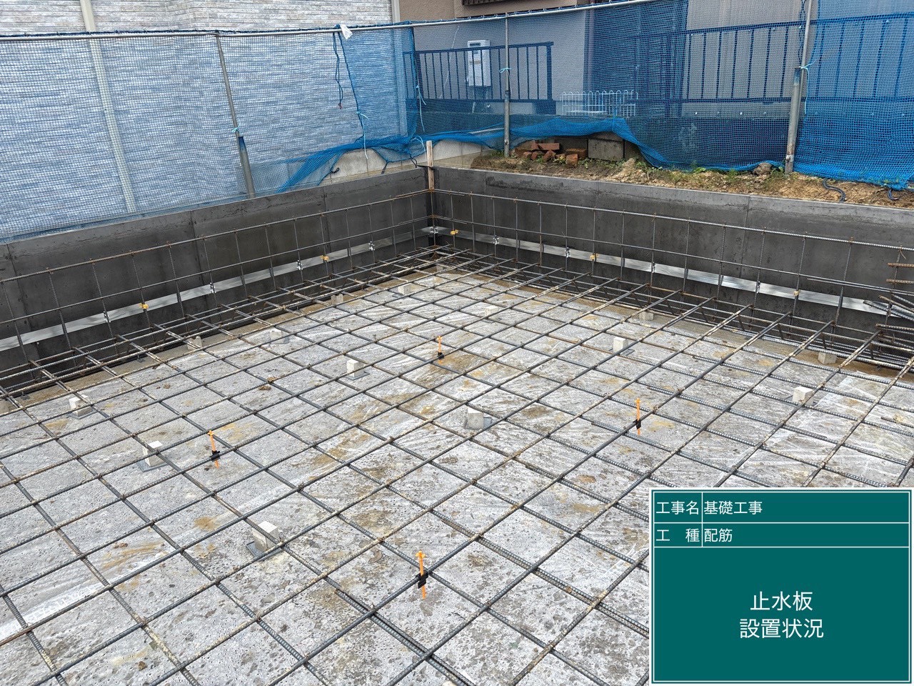 基礎コンクリートの継ぎ目部分には、止水板を設置します。