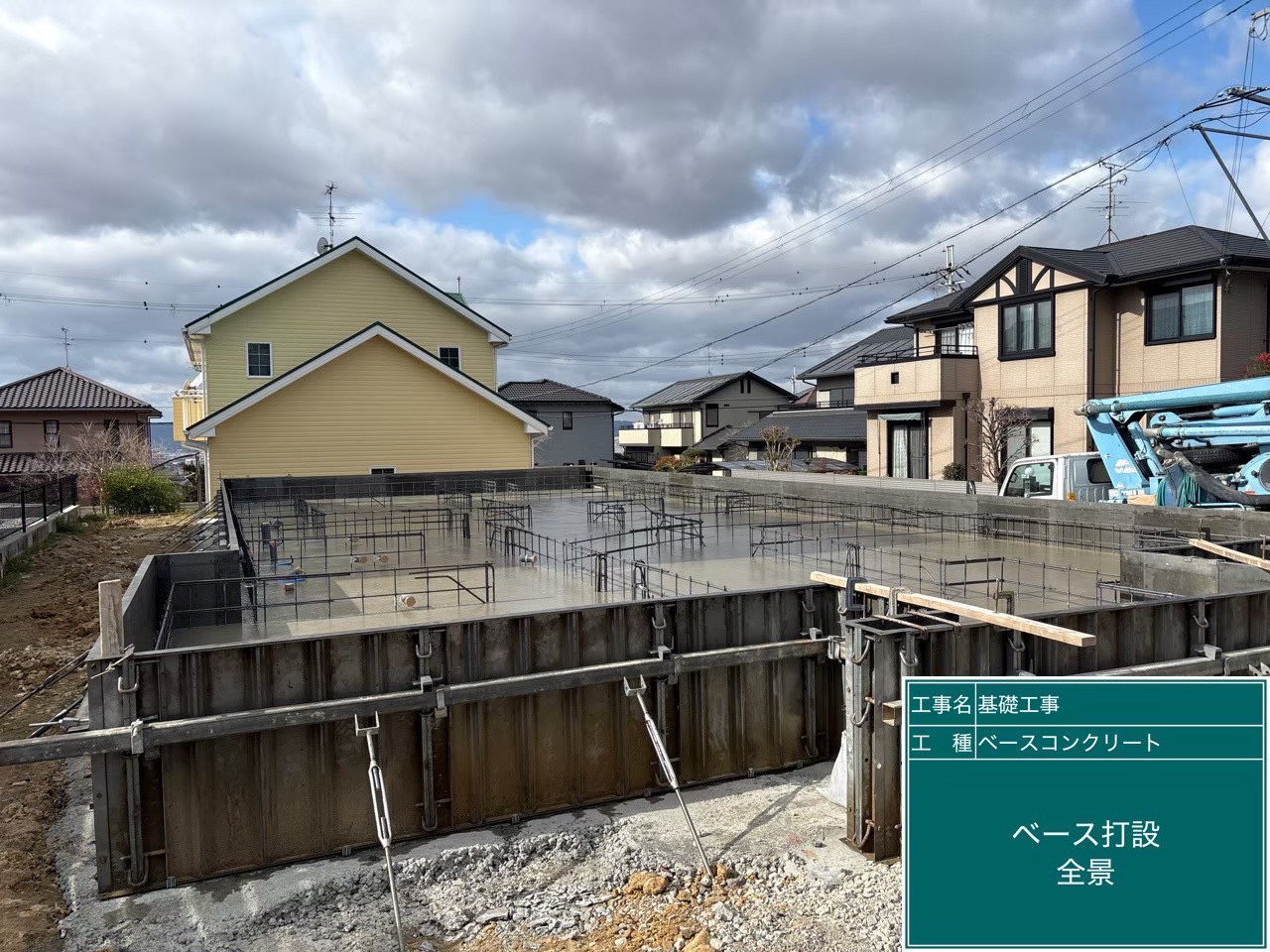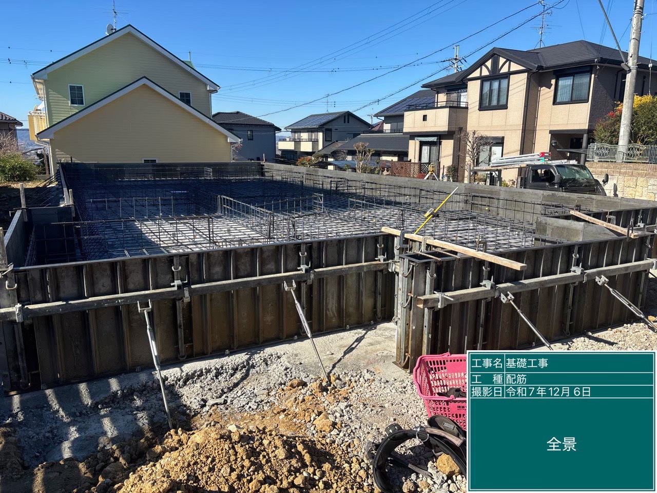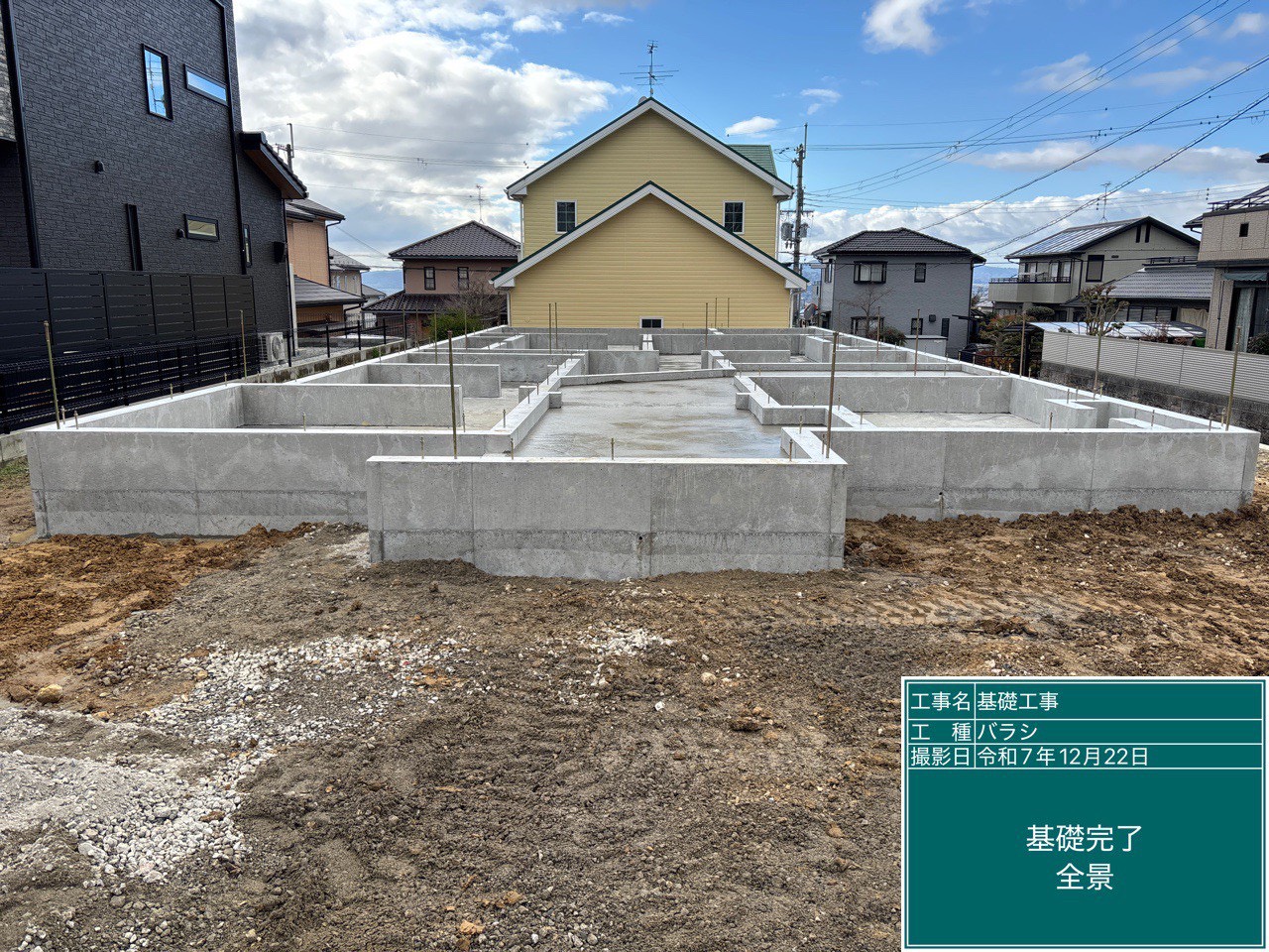 最終段階の施工写真では、基礎工事が完了した全景が捉えられています。